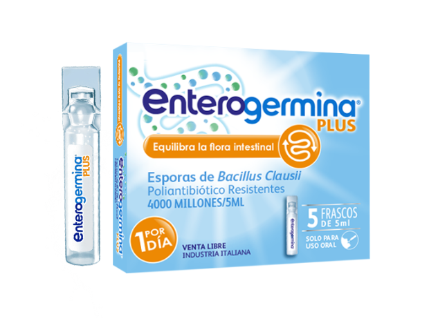 Enterogermina Plus® contiene billones de probióticos que restauran el equilibrio de la flora intestinal, aliviando malestares digestivos como diarrea, restaurando la flora intestinal y fortaleciendo tus defensas digestivas. (1,6)